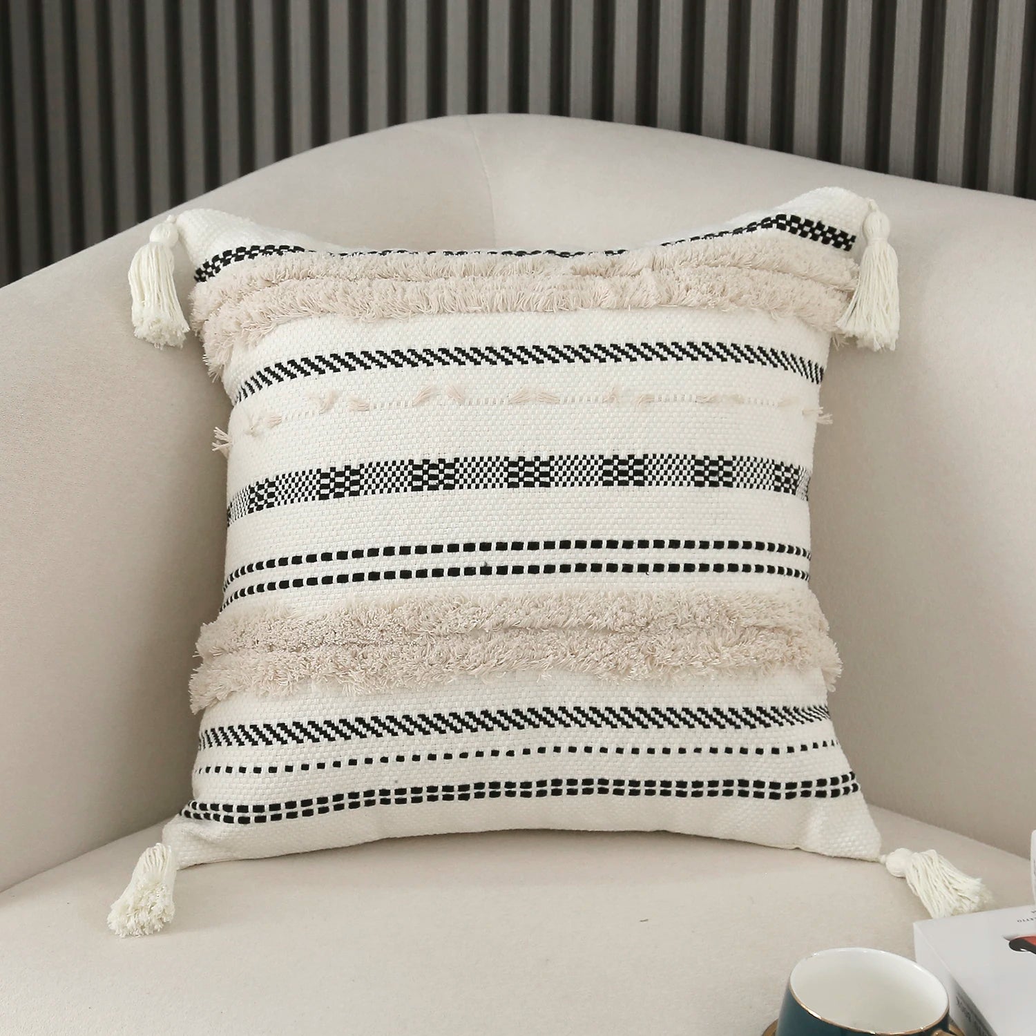 Elevate your home décor with this Neutral Striped Throw Pillow Cover featuring soft woven fabric and chic tassels. Perfect for adding texture and warmth to your living room, bedroom, or sofa décor, this pillowcase blends modern minimalism with cozy charm.